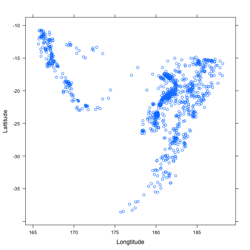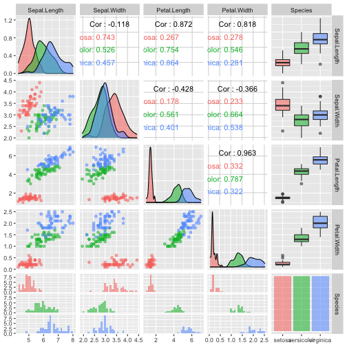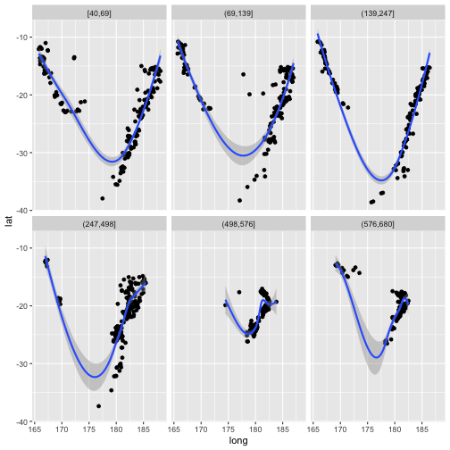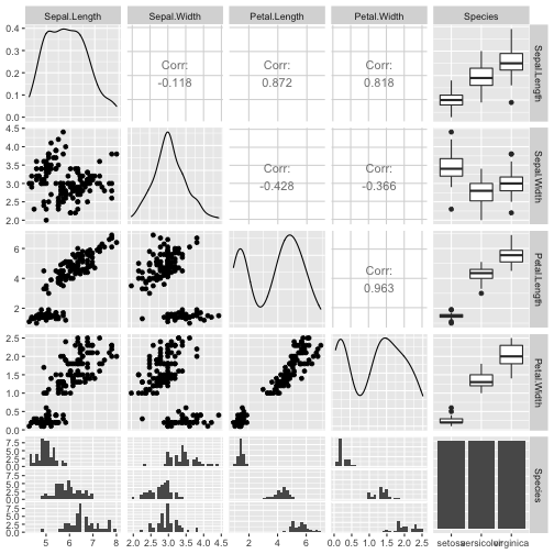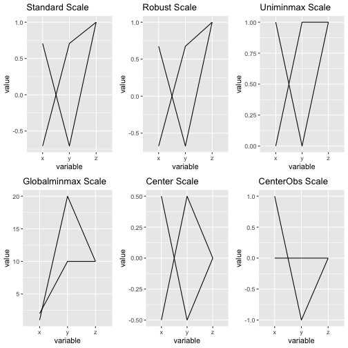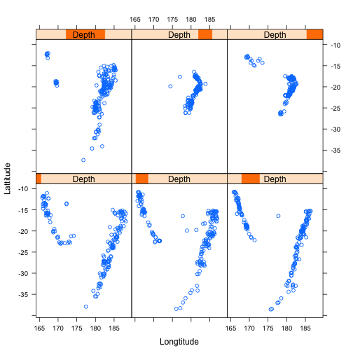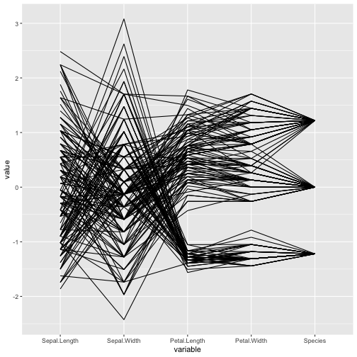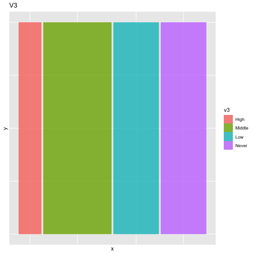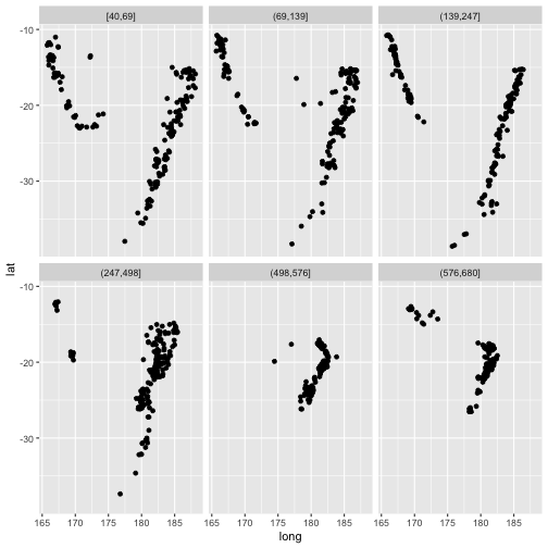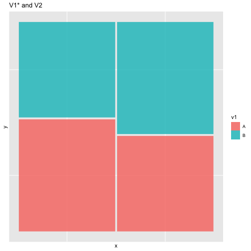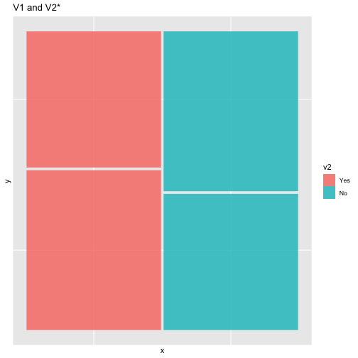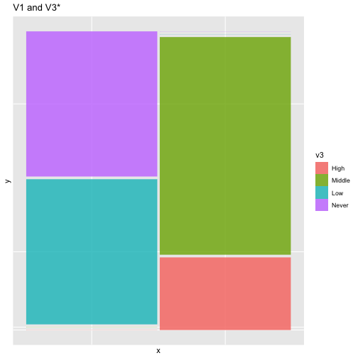 class: center, middle, inverse, title-slide # ASP 460 2.0 Special Topics in Statistics ## Higher-dimensional Displays and Special Structures ### Thiyanga Talagala ### 2020-06-10 --- ## Higher-dimensional Displays and Special Structures - Scatterplot Matrices (Sploms) - Parallel Coordinates - Mosaic Plots - Small Multiples and Trellis Displays - Time Series --- ## Scatterplot Matrices <!-- --> --- <!-- --> --- <!-- --> --- ```r set.seed(2020) x <- as.factor(c(rep(1, 100), rep(0, 100))) y <- as.factor(sample(x)) z <- as.factor(c(rep(1, 25), rep(2, 75), rep(3, 50), rep(4, 50))) x <- factor(x, label=c("A", "B")) y <- factor(y, label=c("Yes", "No")) z <- factor(z, label=c("High", "Middle", "Low", "Never")) df <- data.frame(v1=x, v2=y, v3=z) summary(df) ``` ``` v1 v2 v3 A:100 Yes:100 High :25 B:100 No :100 Middle:75 Low :50 Never :50 ``` --- ```r table(df$v1,df$v2) ``` ``` Yes No A 54 46 B 46 54 ``` ```r table(df$v1, df$v3) ``` ``` High Middle Low Never A 0 0 50 50 B 25 75 0 0 ``` ```r table(df$v2, df$v3) ``` ``` High Middle Low Never Yes 12 34 28 26 No 13 41 22 24 ``` --- # Mosaic Plot (1 ~ X) .pull-left[ ``` Yes No A 54 46 B 46 54 ``` ``` High Middle Low Never A 0 0 50 50 B 25 75 0 0 ``` ``` High Middle Low Never Yes 12 34 28 26 No 13 41 22 24 ``` ] .pull-right[ ```r library(ggmosaic) ggplot(df)+ geom_mosaic(aes(x=product(v1)))+ ggtitle("V1") ``` <!-- --> ] --- # Mosaic Plot (1 ~ X) .pull-left[ ``` v1 v2 v3 A:100 Yes:100 High :25 B:100 No :100 Middle:75 Low :50 Never :50 ``` ``` Yes No A 54 46 B 46 54 ``` ``` High Middle Low Never A 0 0 50 50 B 25 75 0 0 ``` ``` High Middle Low Never Yes 12 34 28 26 No 13 41 22 24 ``` ] .pull-right[ ```r ggplot(df)+ geom_mosaic(aes(x=product(v1), fill=v1))+ ggtitle("V1") ``` <!-- --> ] --- # Mosaic Plot (1 ~ X) .pull-left[ ``` v1 v2 v3 A:100 Yes:100 High :25 B:100 No :100 Middle:75 Low :50 Never :50 ``` ``` Yes No A 54 46 B 46 54 ``` ``` High Middle Low Never A 0 0 50 50 B 25 75 0 0 ``` ``` High Middle Low Never Yes 12 34 28 26 No 13 41 22 24 ``` ] .pull-right[ ```r ggplot(df)+ geom_mosaic(aes(x=product(v3), fill=v3))+ ggtitle("V3") ``` <!-- --> ] --- # Mosaic Plot (1 ~ Y + X) .pull-left[ ``` v1 v2 v3 A:100 Yes:100 High :25 B:100 No :100 Middle:75 Low :50 Never :50 ``` ``` Yes No A 54 46 B 46 54 ``` ``` High Middle Low Never A 0 0 50 50 B 25 75 0 0 ``` ``` High Middle Low Never Yes 12 34 28 26 No 13 41 22 24 ``` ] .pull-right[ ```r ggplot(df)+ geom_mosaic(aes(x=product(v1, v2), fill=v2))+ggtitle("V1 and V2*") ``` <!-- --> ] --- # Mosaic Plot (1 ~ Y + X) .pull-left[ ``` v1 v2 v3 A:100 Yes:100 High :25 B:100 No :100 Middle:75 Low :50 Never :50 ``` ``` Yes No A 54 46 B 46 54 ``` ``` High Middle Low Never A 0 0 50 50 B 25 75 0 0 ``` ``` High Middle Low Never Yes 12 34 28 26 No 13 41 22 24 ``` ] .pull-right[ ```r ggplot(df)+ geom_mosaic(aes(x=product(v1, v2), fill=v1))+ggtitle("V1* and V2") ``` <!-- --> ] --- # Mosaic Plot (1 ~ Y + X) .pull-left[ ``` v1 v2 v3 A:100 Yes:100 High :25 B:100 No :100 Middle:75 Low :50 Never :50 ``` ``` Yes No A 54 46 B 46 54 ``` ``` High Middle Low Never A 0 0 50 50 B 25 75 0 0 ``` ``` High Middle Low Never Yes 12 34 28 26 No 13 41 22 24 ``` ] .pull-right[ ```r ggplot(df)+ geom_mosaic(aes(x=product(v1, v3), fill=v1))+ggtitle("V1 and V3*") ``` <!-- --> ] --- # Mosaic Plot (1 ~ Y + X) .pull-left[ ``` v1 v2 v3 A:100 Yes:100 High :25 B:100 No :100 Middle:75 Low :50 Never :50 ``` ``` Yes No A 54 46 B 46 54 ``` ``` High Middle Low Never A 0 0 50 50 B 25 75 0 0 ``` ``` High Middle Low Never Yes 12 34 28 26 No 13 41 22 24 ``` ] .pull-right[ ```r ggplot(df)+ geom_mosaic(aes(x=product(v3, v1), fill=v1))+ggtitle("V1 and V3*") ``` <!-- --> ] --- # Mosaic Plot (1 ~ Y + X) .pull-left[ ``` v1 v2 v3 A:100 Yes:100 High :25 B:100 No :100 Middle:75 Low :50 Never :50 ``` ``` Yes No A 54 46 B 46 54 ``` ``` High Middle Low Never A 0 0 50 50 B 25 75 0 0 ``` ``` High Middle Low Never Yes 12 34 28 26 No 13 41 22 24 ``` ] .pull-right[ ```r ggplot(df)+ geom_mosaic(aes(x=product(v3, v1), fill=v3))+ggtitle("V1 and V3*") ``` <!-- --> ] --- # Mosaic Plot (1 ~ Y + X|Z) .pull-left[ ``` High Middle Low Never A 0 0 28 26 B 12 34 0 0 ``` ``` High Middle Low Never A 0 0 22 24 B 13 41 0 0 ``` ] .pull-right[ ```r ggplot(df)+ geom_mosaic(aes(x=product(v3, v1), fill=v3))+ggtitle("V1 and V3*") + facet_wrap(~v2) ``` <!-- --> ] --- # Conditioning plots (Coplots) ## Trellis Graphics - Grid graphic system - The idea is based on conditioning on the values taken on by one or more of the variables in a data set. - Categorical: same subplot for levels of the conditioning variable - Numeric: same subplot for different ranges (intervals) of the conditioning variable --- # Trellis Graphics: Categorical <!-- --> --- # Trellis Graphics: Numeric `quakes`: magitude of earthquakes under the Tonga Trench, to the North of New Zealand. ```r str(quakes) ``` ``` 'data.frame': 1000 obs. of 5 variables: $ lat : num -20.4 -20.6 -26 -18 -20.4 ... $ long : num 182 181 184 182 182 ... $ depth : int 562 650 42 626 649 195 82 194 211 622 ... $ mag : num 4.8 4.2 5.4 4.1 4 4 4.8 4.4 4.7 4.3 ... $ stations: int 41 15 43 19 11 12 43 15 35 19 ... ``` ```r library(lattice) ``` --- # Trellis Graphics: Numeric <!-- --> --- .pull-left[ ## Unconditional plot <!-- --> ] .pull-right[ ## Conditional plot <!-- --> Condition on `depth` ] --- # Coplots using ggplot .pull-left[ <!-- --> ] .pull-right[ <!-- --> ] --- # Coplots using ggplot .pull-left[ <!-- --> ] .pull-right[ <!-- --> ] --- # Parallel Coordinates Plots ```r df1 <- data.frame(x=c(1, 2), y=c(20, 10), z=c(10, 10)) df1 ``` ``` x y z 1 1 20 10 2 2 10 10 ``` <!-- --> --- <!-- --> --- <!-- --> --- <!-- --> --- <!-- --> --- <!-- --> --- ## ggparcoord: scales The different types of scales are as follows: `std`: univariately, subtract mean and divide by standard deviation `robust`: univariately, subtract median and divide by median absolute deviation `uniminmax`: univariately, scale so the minimum of the variable is zero, and the maximum is one `globalminmax`: no sc